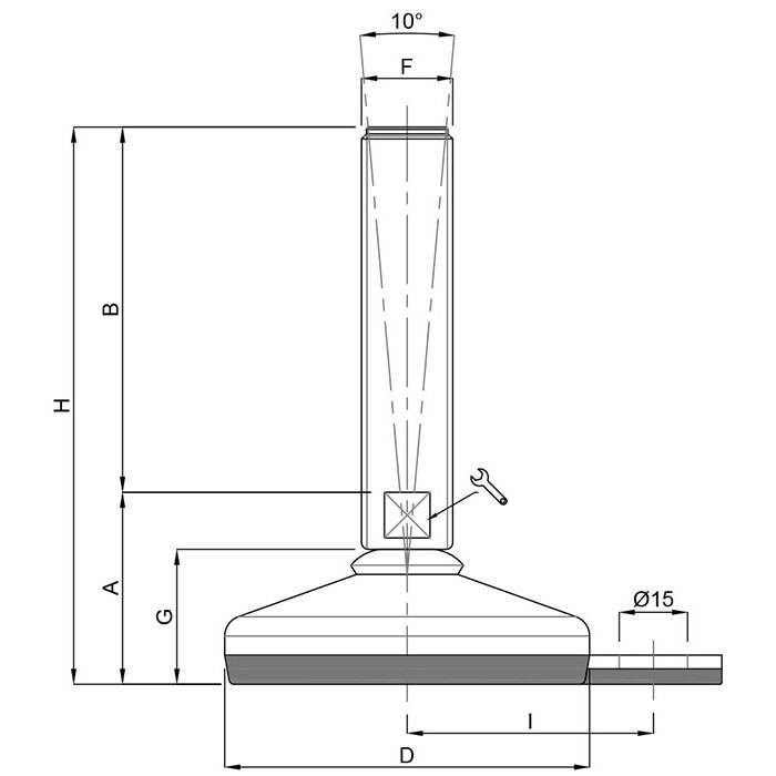 Pied de nivellement 25126R/F en acier inoxydable avec base en caoutchouc et fixation – support réglable pour machines alimentair