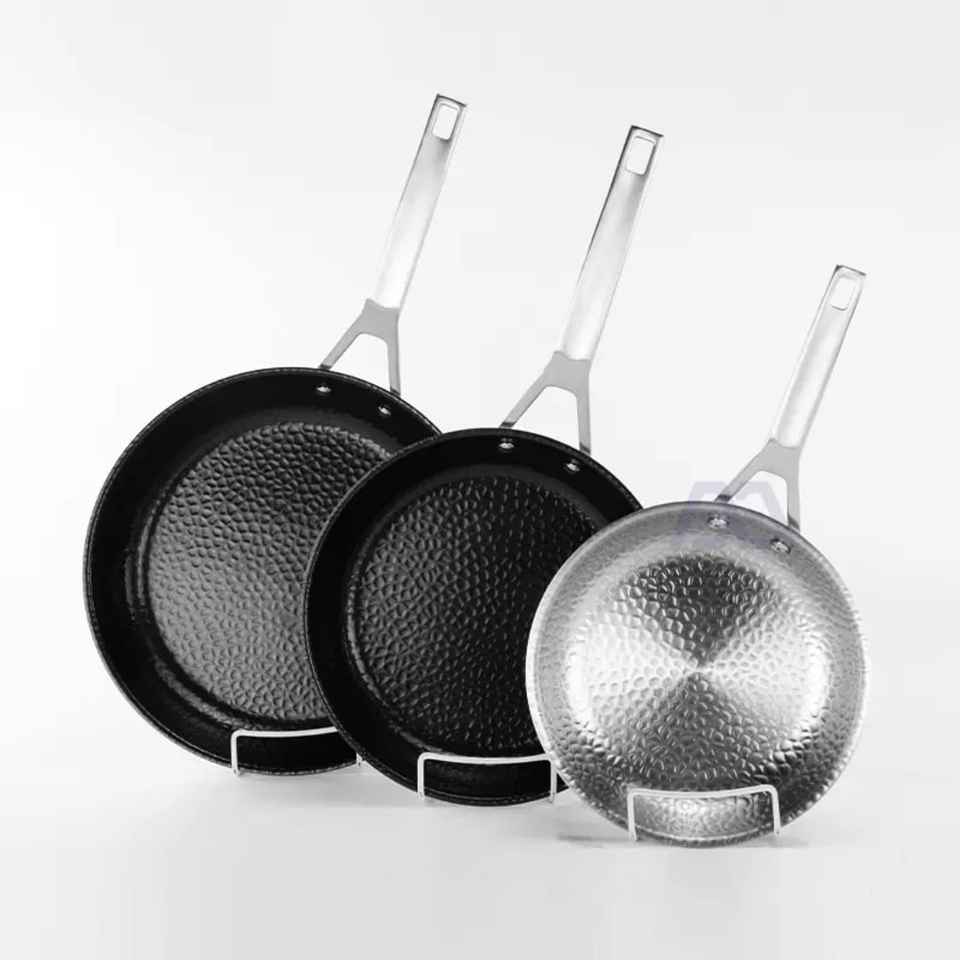 Ensemble de poêles en fonte avec revêtement en acier inoxydable antiadhésif, résistant à la chaleur, compatible induction, design moderne, plastique écologique