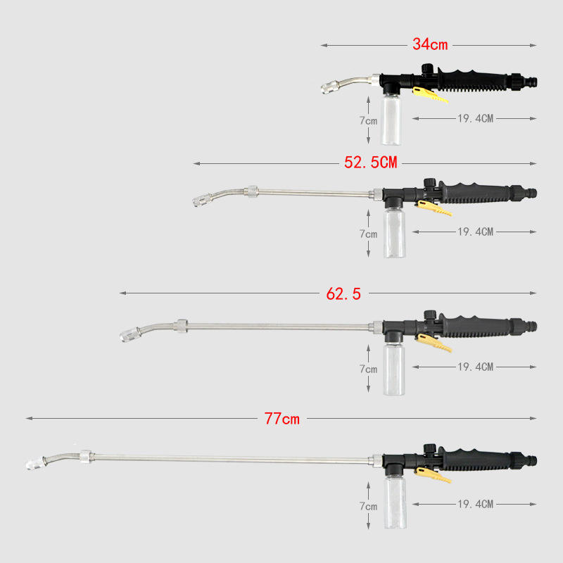 Pistolet à eau en acier inoxydable à long manche, 77 cm, pulvérisateur haute pression réglable pour le nettoyage