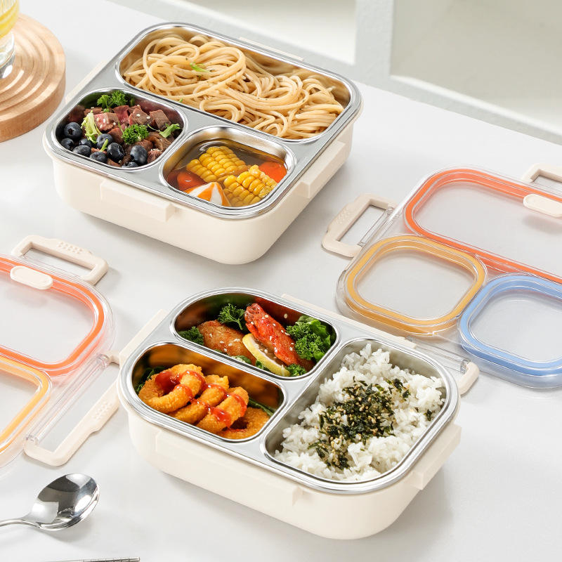 Boîte à lunch en acier inoxydable 304, boîte à bento rectangulaire divisée et scellée pour étudiants, employés de bureau, enfants