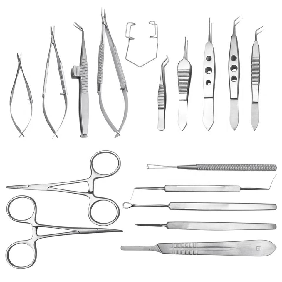 Ensemble manuel de chirurgie de la cataracte en acier inoxydable, 17 pièces, haute qualité, certifié CE, kit d'instruments chirurgicaux ophtalmiques optimal