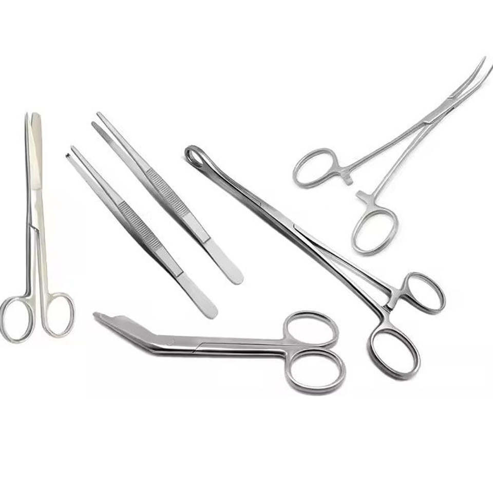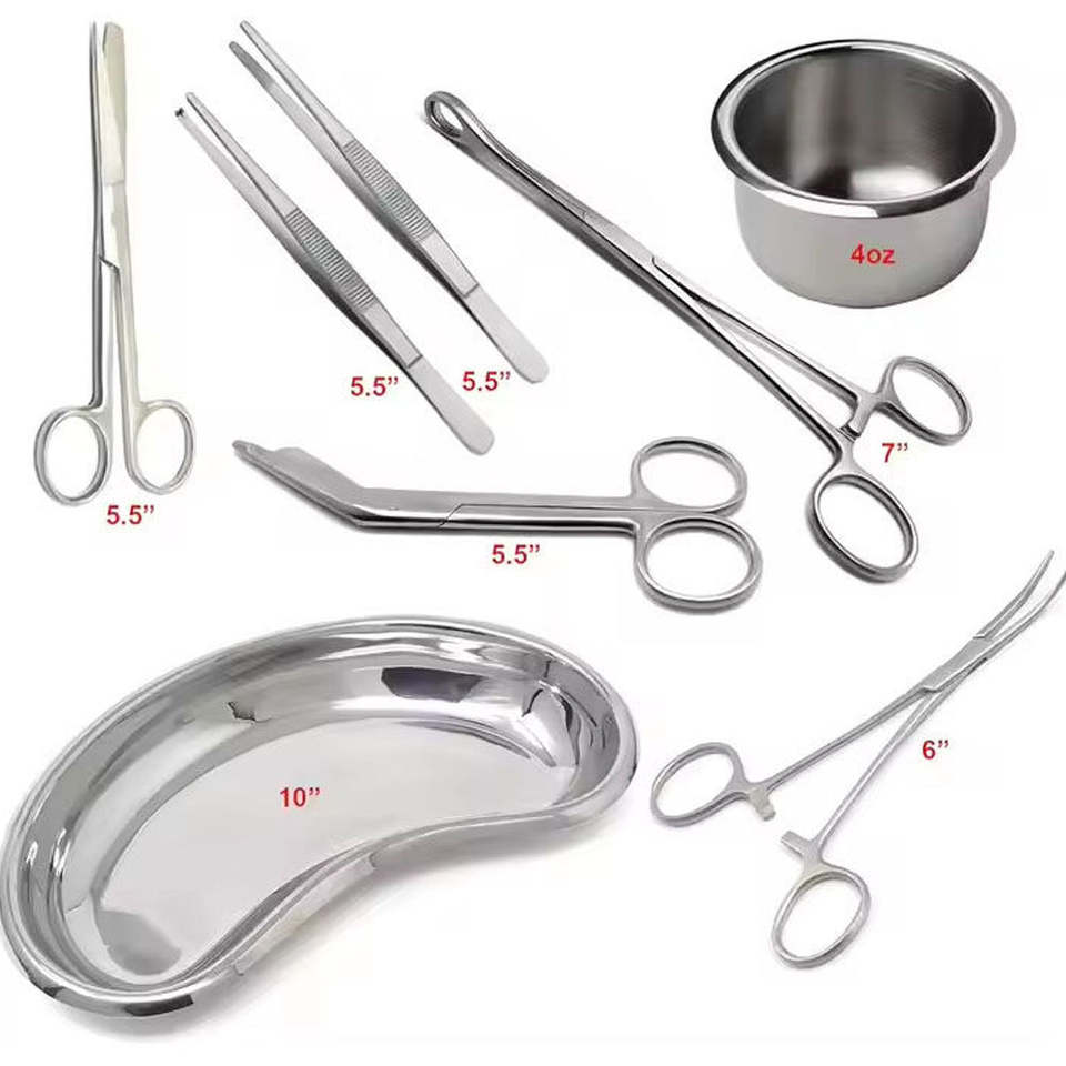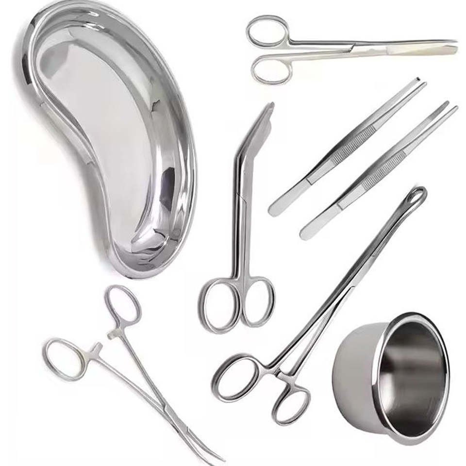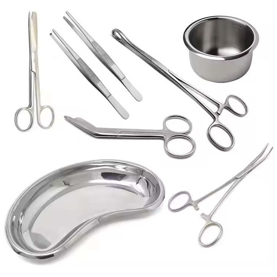 Kit de pansement chirurgical manuel réutilisable en acier inoxydable, comprenant pinces, gallipots et plateau réniforme, 8 pièces, certifié CE ISO13485