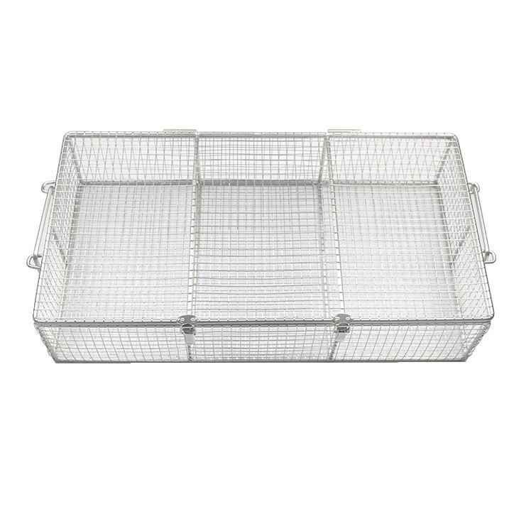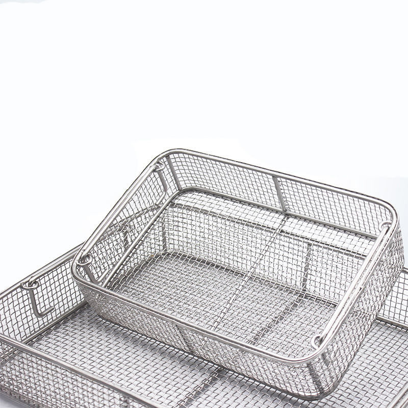 Panier de rangement manuel en acier inoxydable Conteneurs de stérilisation d'instruments chirurgicaux à mailles fines Plateau de panier médical