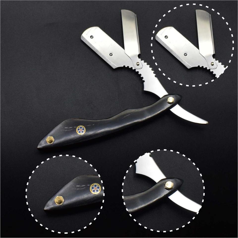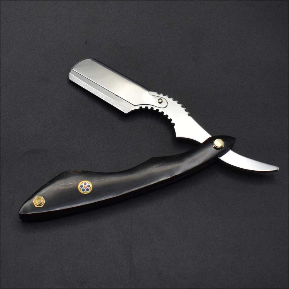 Acier inoxydable manuel droit personnalisé métal barbier droit rasoir de salon lame remplaçable rasoir de gorge coupé