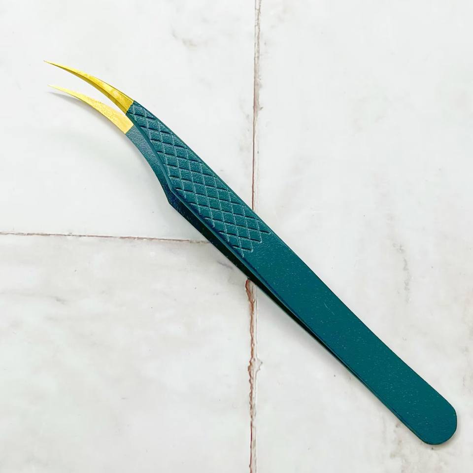 Pince à épiler en acier inoxydable de haute précision pour extensions de cils, série Plume dorée, dauphin et fleur