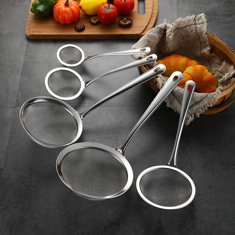 Ensemble de passoires en maille d'acier inoxydable, 5 pièces, pour la cuisine, pour lait de soja, jus, huile, friture, marmite, nouilles, louche