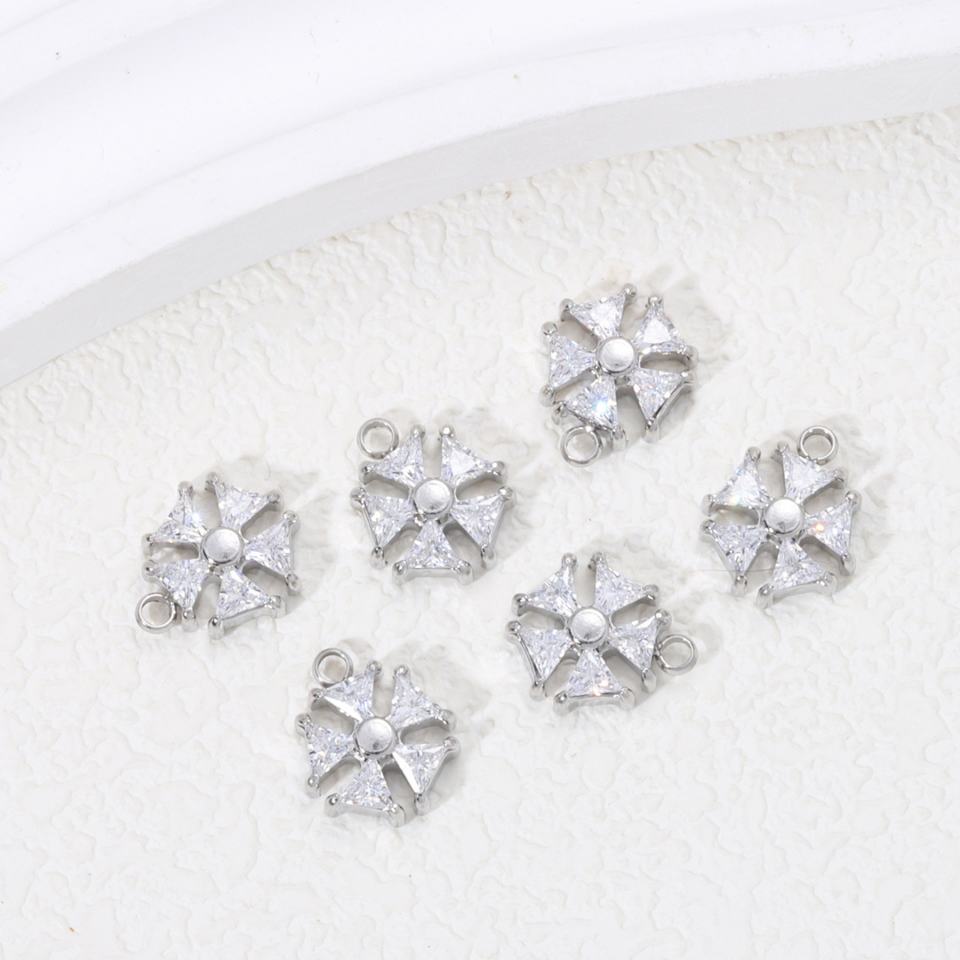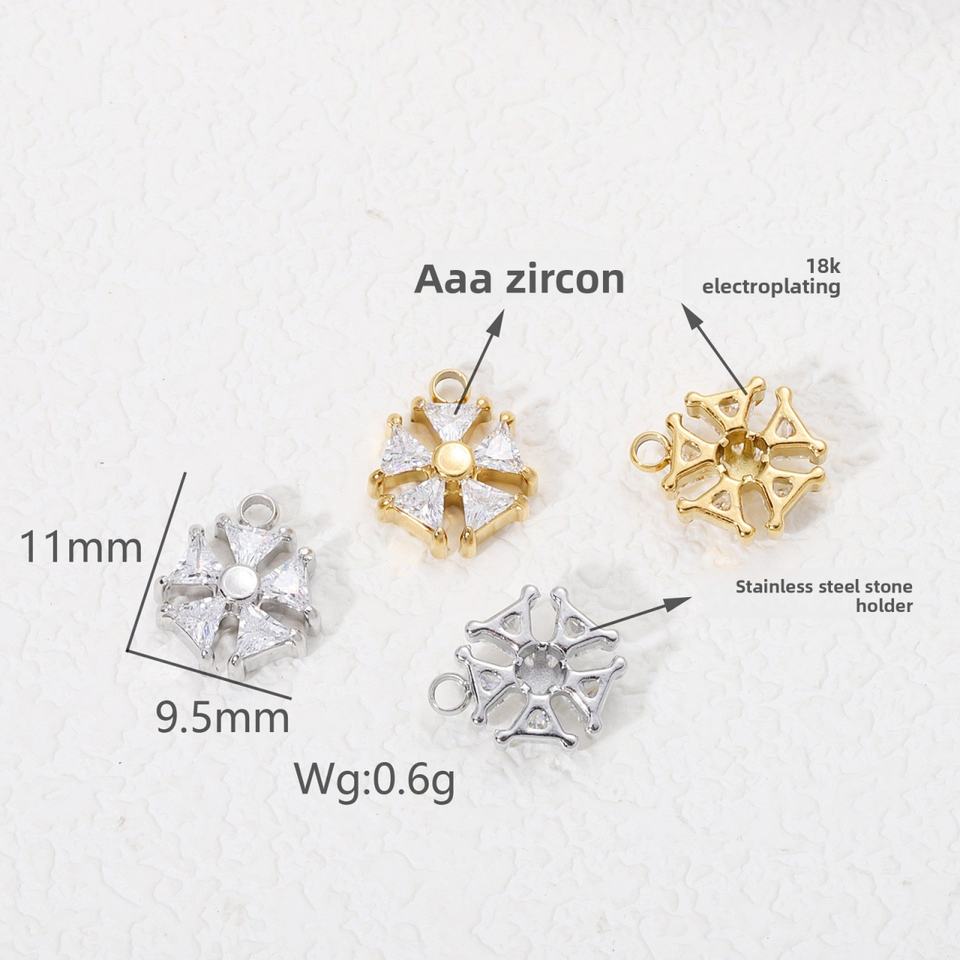 Pendentif en zircon motif flocon de neige en acier inoxydable pour collier, breloques en diamant, breloque en cristal, étanche