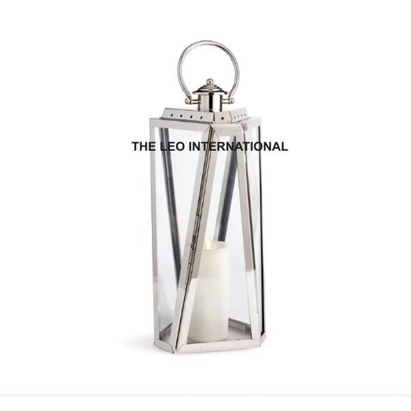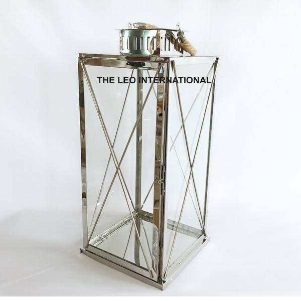 Lanterne à bougie polonaise brillante de forme carrée en métal d'acier inoxydable