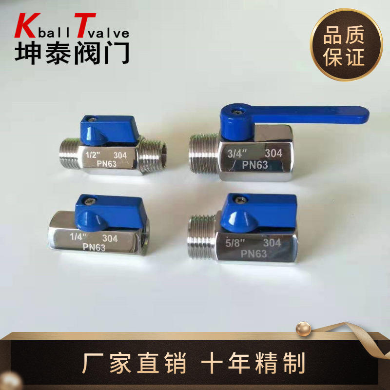 Mini-vanne à boisseau sphérique en acier inoxydable 1/2 po avec poignée bleue pour eau et milieux acides faibles