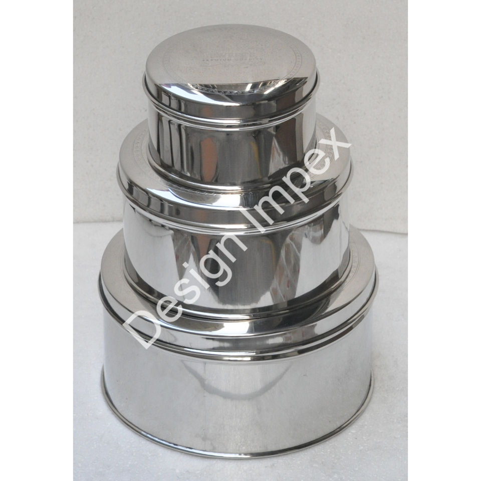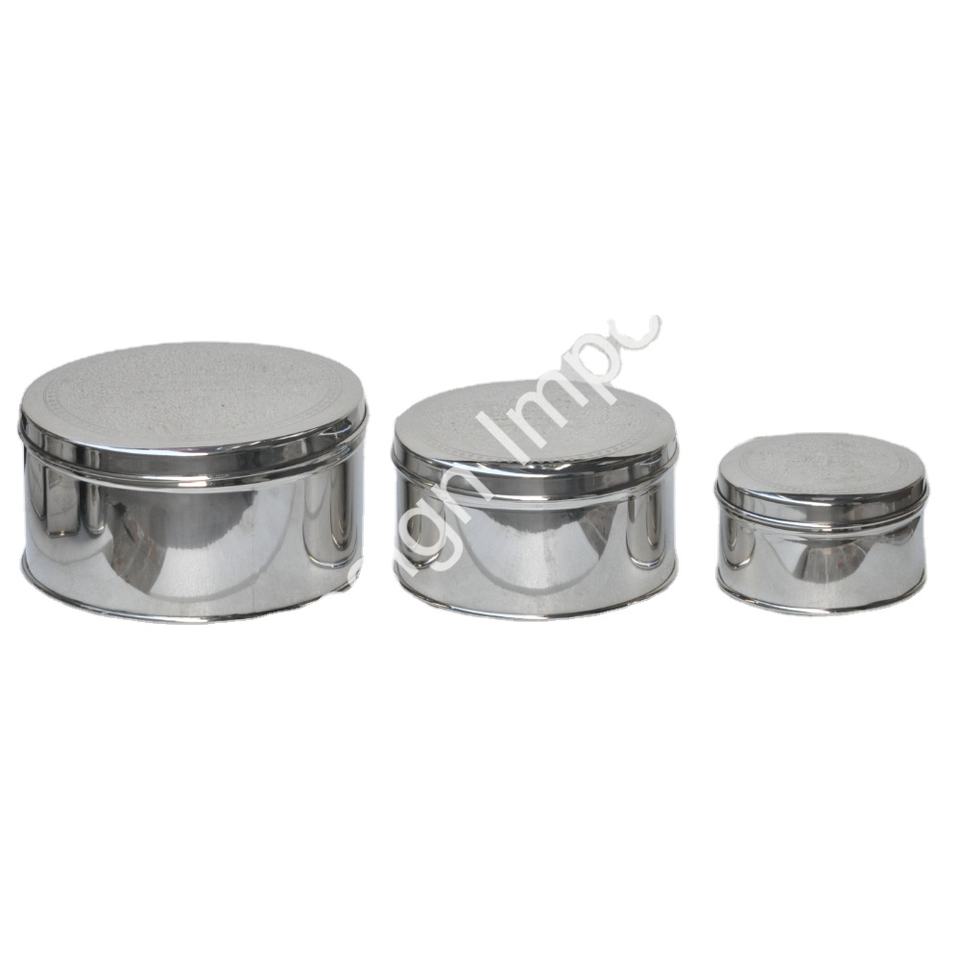 Ensemble de trois pots de collations classiques en acier inoxydable pour décoration de table d'hôtes de très bonne qualité
