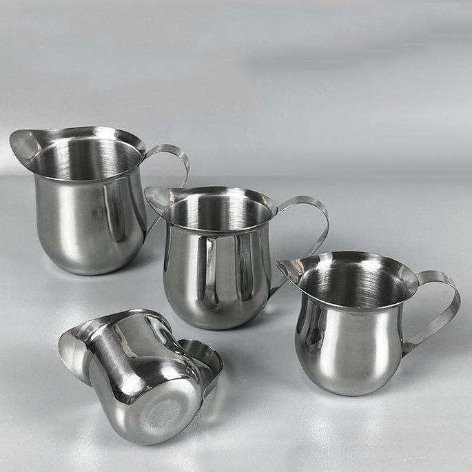 Ensemble de mini-pichets à lait en acier inoxydable, 4 pièces, ronds avec bec verseur pour la préparation du café, latte art, expresso