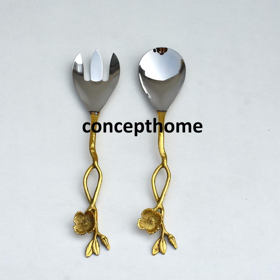 Ensemble de couverts de service de luxe moderne en acier inoxydable poli miroir couleur or, cuillère et fourchette de service en métal écologiques pour mariage