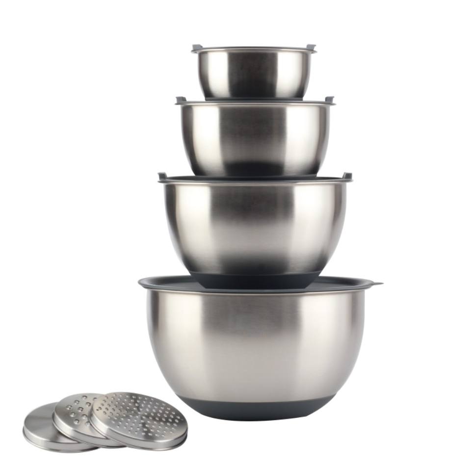 Ensemble de bols mélangeurs en acier inoxydable avec couvercles et râpes, fond antidérapant en silicone, bols à salade, ensemble d'ustensiles de cuisine