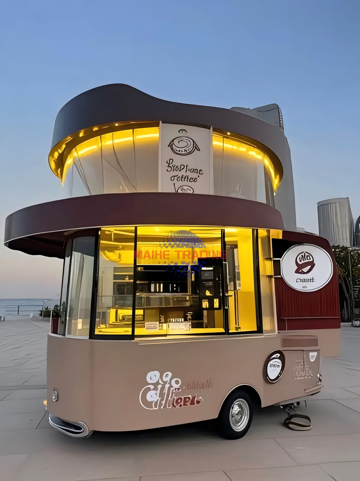 Camion de restauration rapide et de café mobile en acier inoxydable avec service de crème glacée pour la côte, cuisine multifonctionnelle entièrement équipée