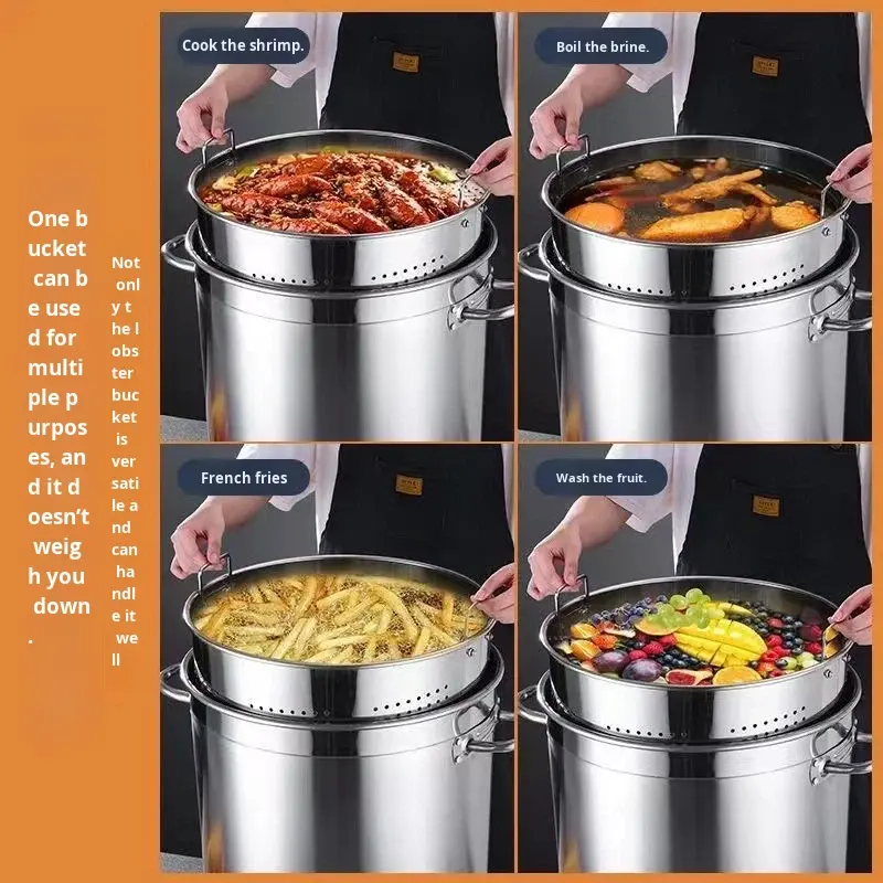 Marmite à fruits de mer en acier inoxydable au design moderne et simple avec panier, marmite à bouillon, friteuse à dinde, marmite à crabe et homard, origine Chaozhou