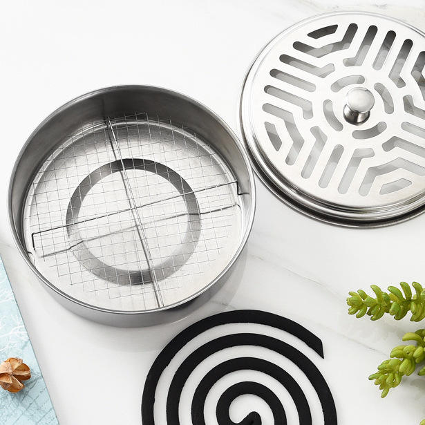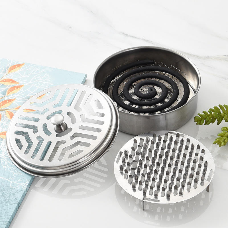 Boîte à spirales anti-moustiques en acier inoxydable avec couvercle, cendrier ignifuge de 12 cm pour usage extérieur