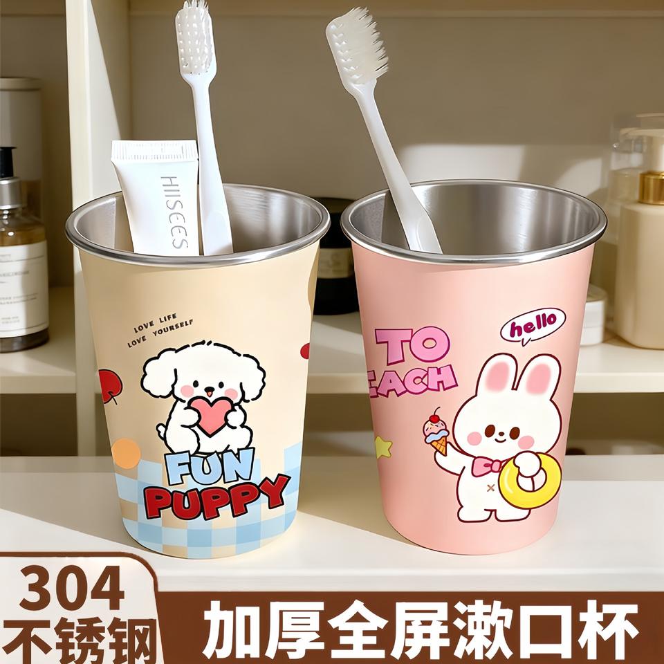 Gobelet à bain de bouche en acier inoxydable, design de dessin animé, large ouverture pour enfants et couples, porte-brosse à dents