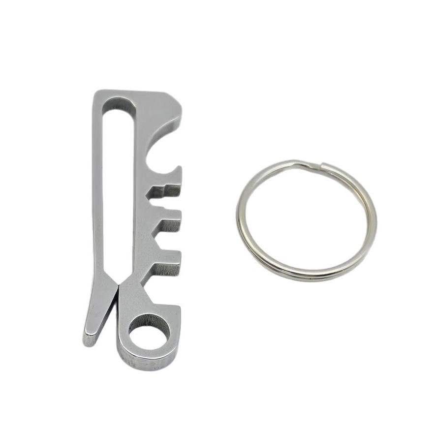 Porte-clés multi-outils en acier inoxydable avec ouvre-bouteille, clé hexagonale et clip de fixation pour usage extérieur