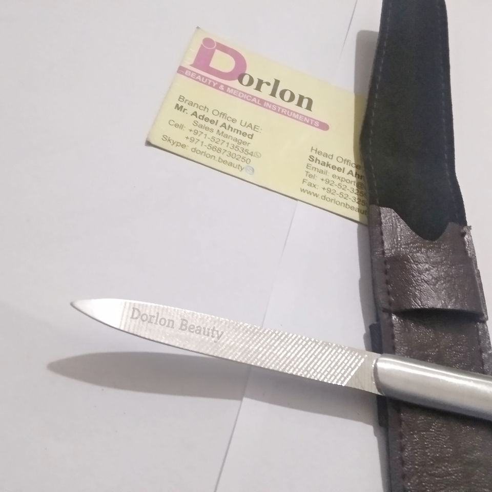Lime à ongles en acier inoxydable avec étui en cuir marque privée manucure pédicure outil de soin des ongles en gros limes à ongles personnalisées