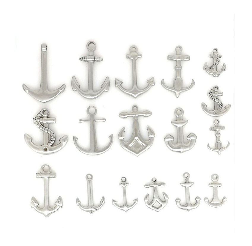 Breloques nautiques en acier inoxydable-pendentifs de roue de bateau de gouvernail d'ancre-résultats de bijoux de thème marin