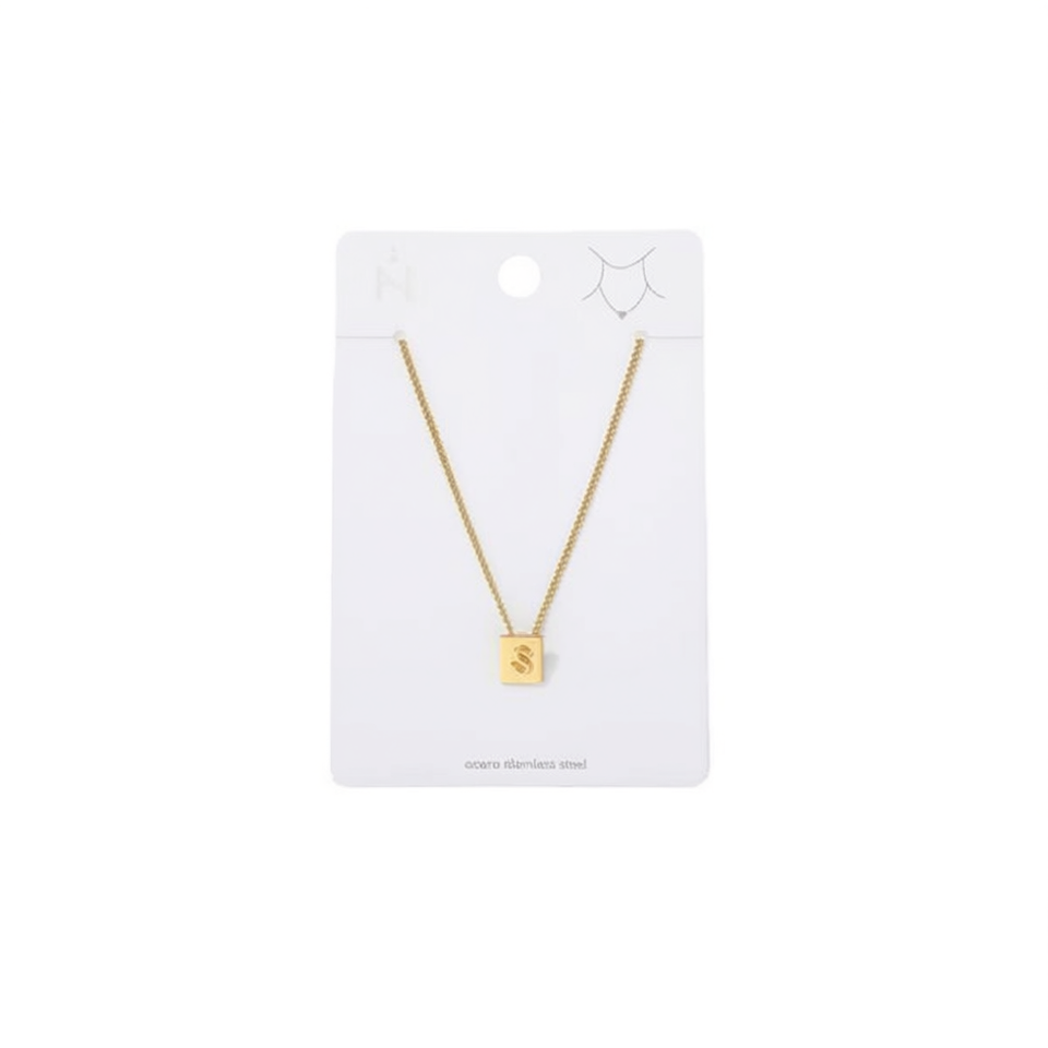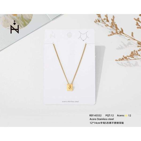 Collier pendentif en acier inoxydable Angelina plaqué or, lettre S carrée, minimaliste, à porter au quotidien