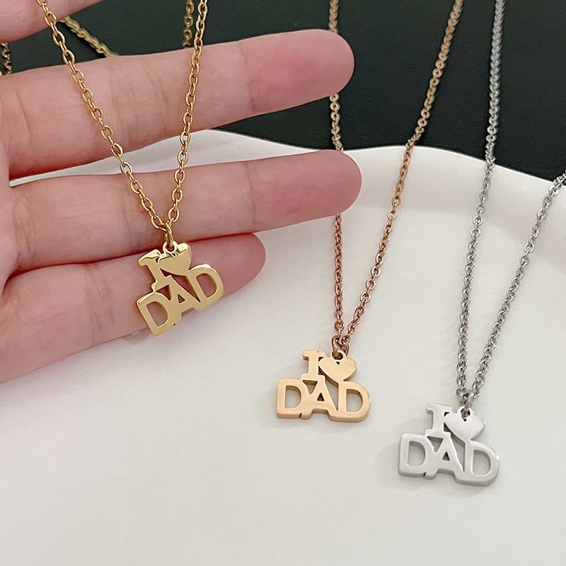 Collier en acier inoxydable avec pendentif amour personnalisé plaqué or lettres creuses miroir nouveau cadeau tendance pour la fête des pères