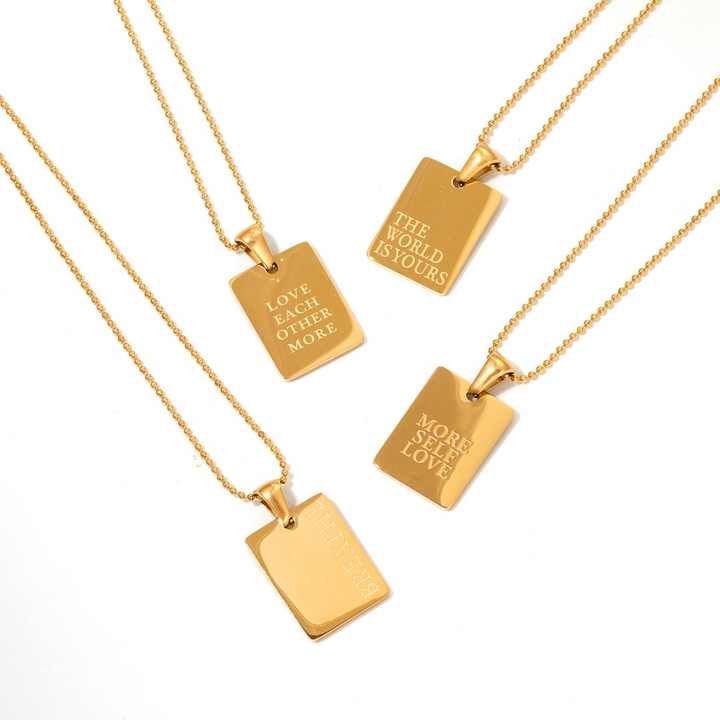 Collier en acier inoxydable rectangulaire avec lettre anglaise plaqué or 18 carats pour femme, pendentif tendance