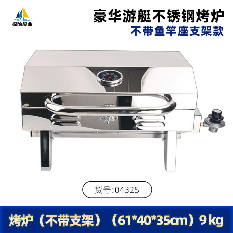 Stainless Steel Outdoor Yacht BBQ Grill Gas-Fired Portable with Adjustable Fishing Rod Holder for Boats