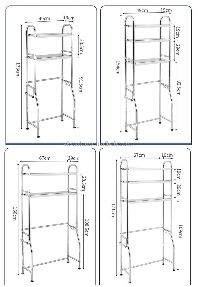 Nom du produit:Acier inoxydable au-dessus du support d'étagère de washmachine avec 2 teirs et 3 niveaux