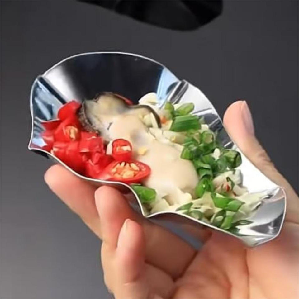 Ensemble de 3 plats à huîtres en acier inoxydable, plateau à condiments pour la cuisine, assiette creuse avec design ondulé