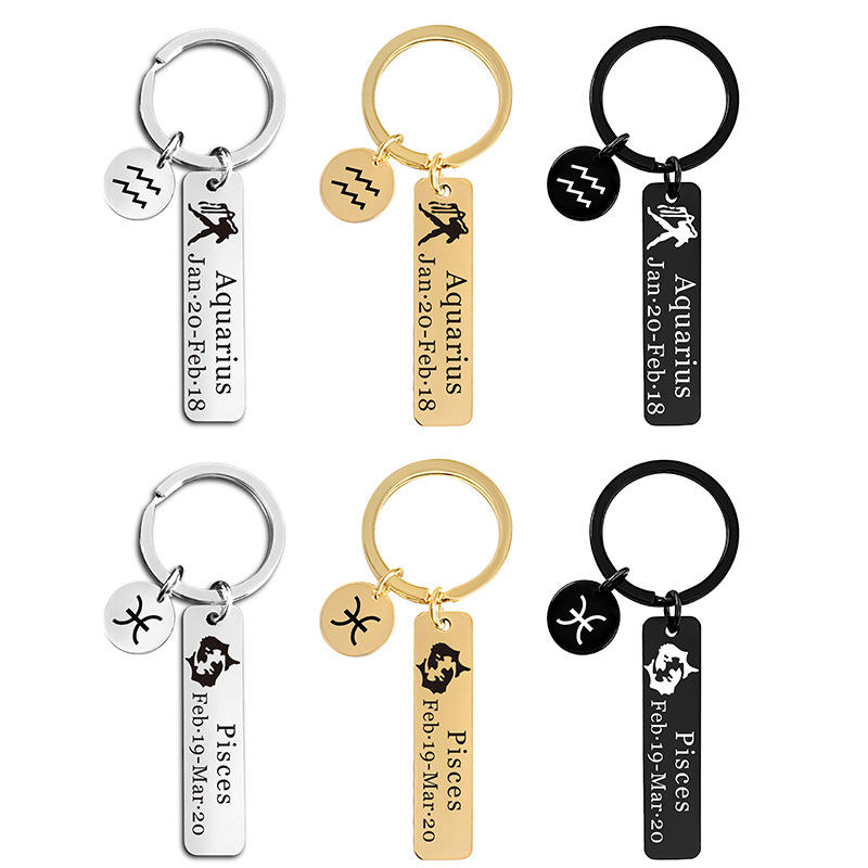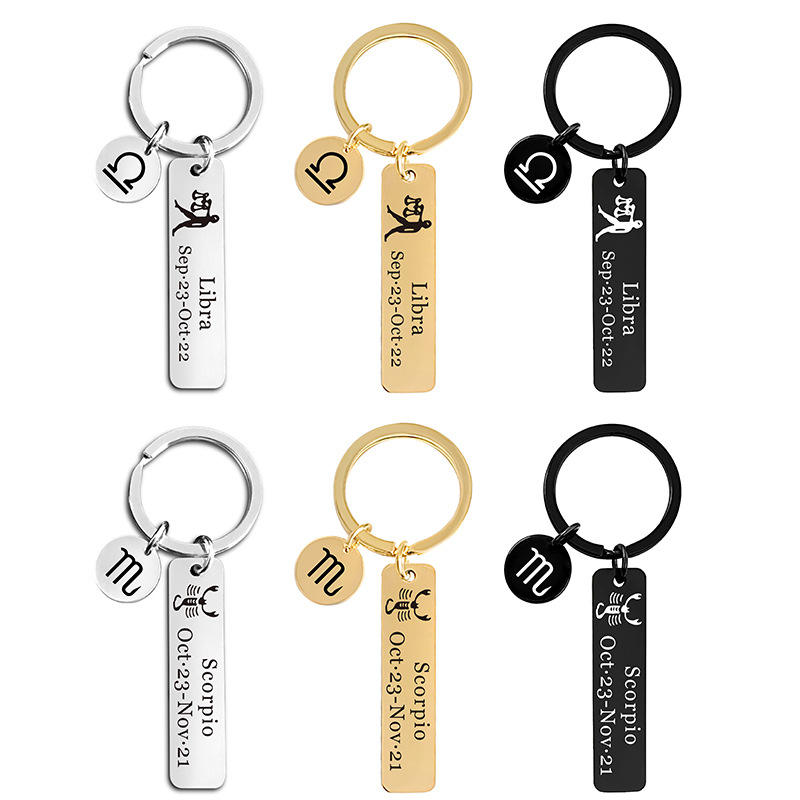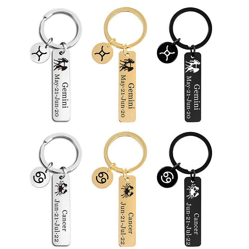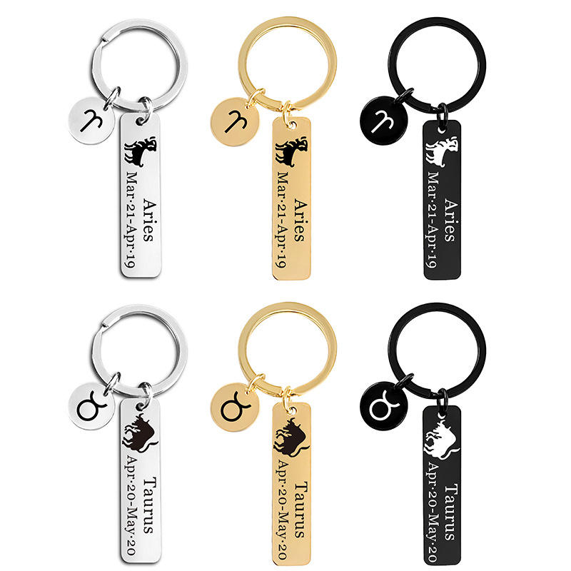 Porte-clés pendentif en acier inoxydable, forme d'étoile, horoscope, chaine 12 étoiles, cadeau de vacances, lettre année