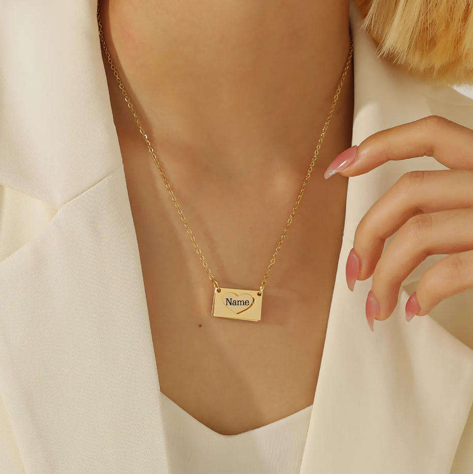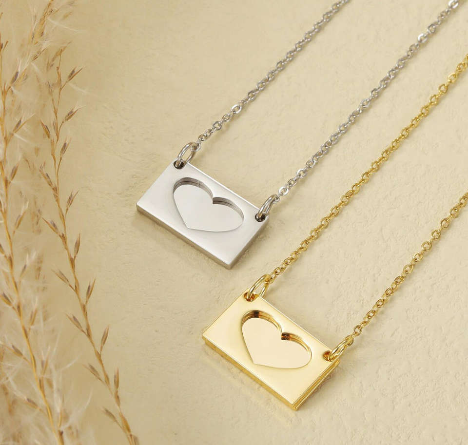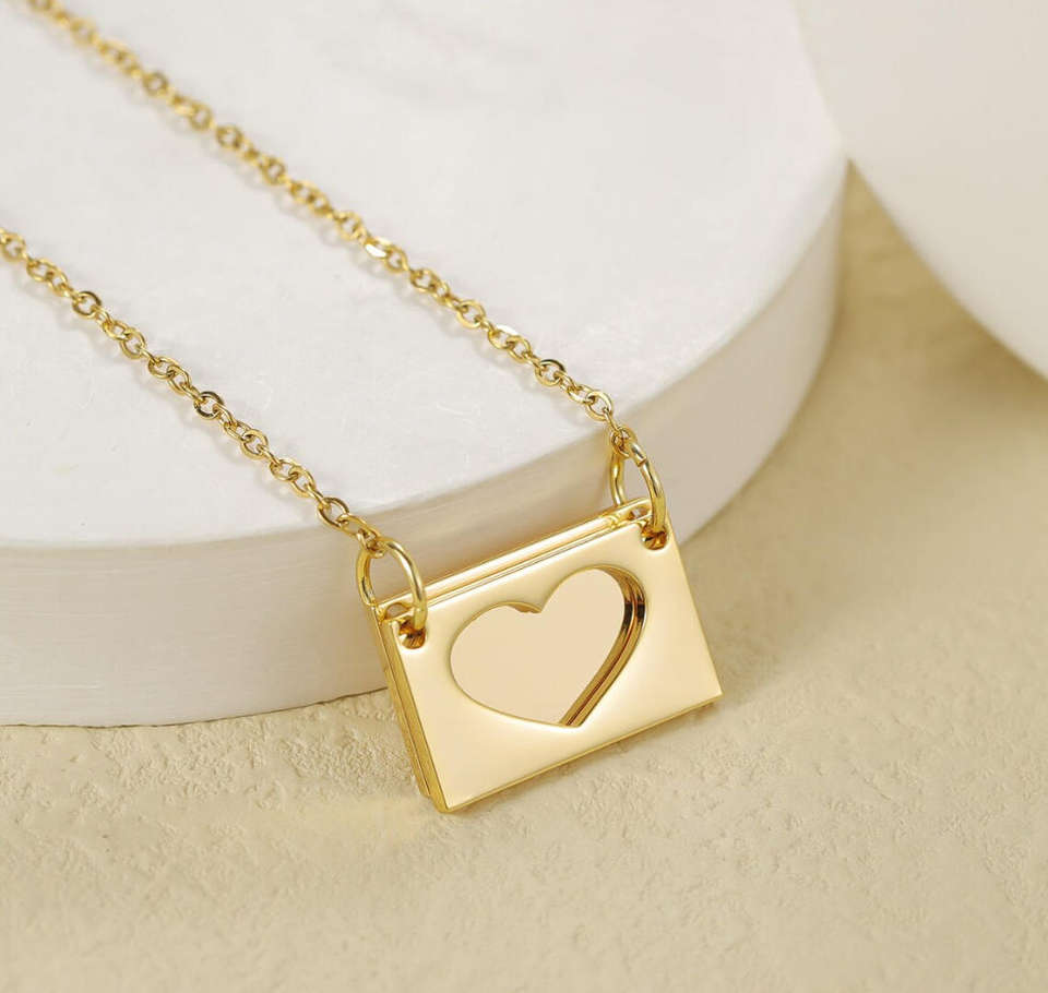 Collier avec pendentif en forme d'enveloppe personnalisé en acier inoxydable, gravé avec un message secret « Je t'aime », collier photo commémoratif, cadeau