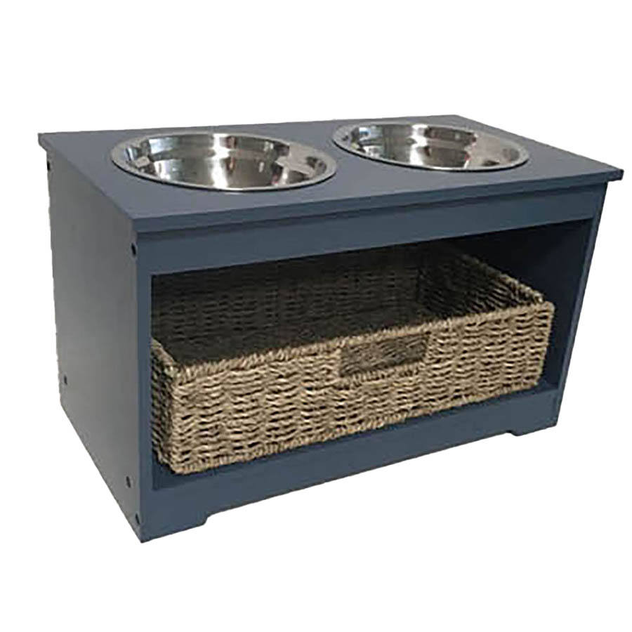 Built-in woven storage basket, Dual stainless steel bowlsFeature