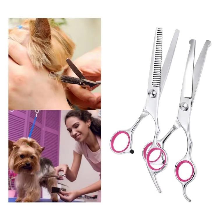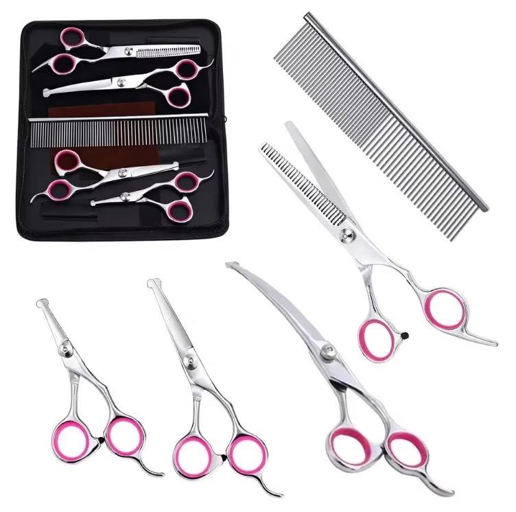 Ensemble de ciseaux de toilettage pour animaux de compagnie en acier inoxydable, outils de coupe professionnels pour chiens, chats, fourrure, salon, maison