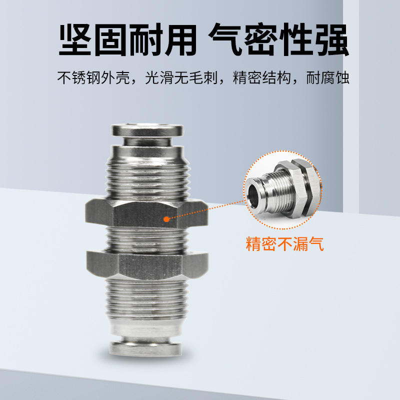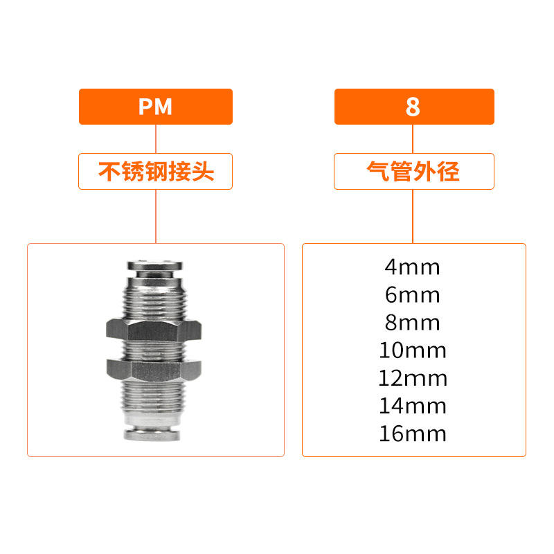 Connecteur pneumatique en acier inoxydable PM 8 mm, raccord rapide à filetage externe pour tube d'air