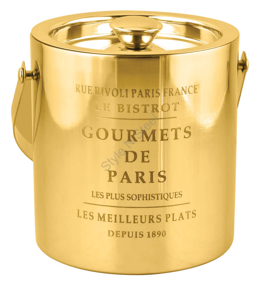 Name:double-wall "Gourmets de Paris" ice bucket in gold color
