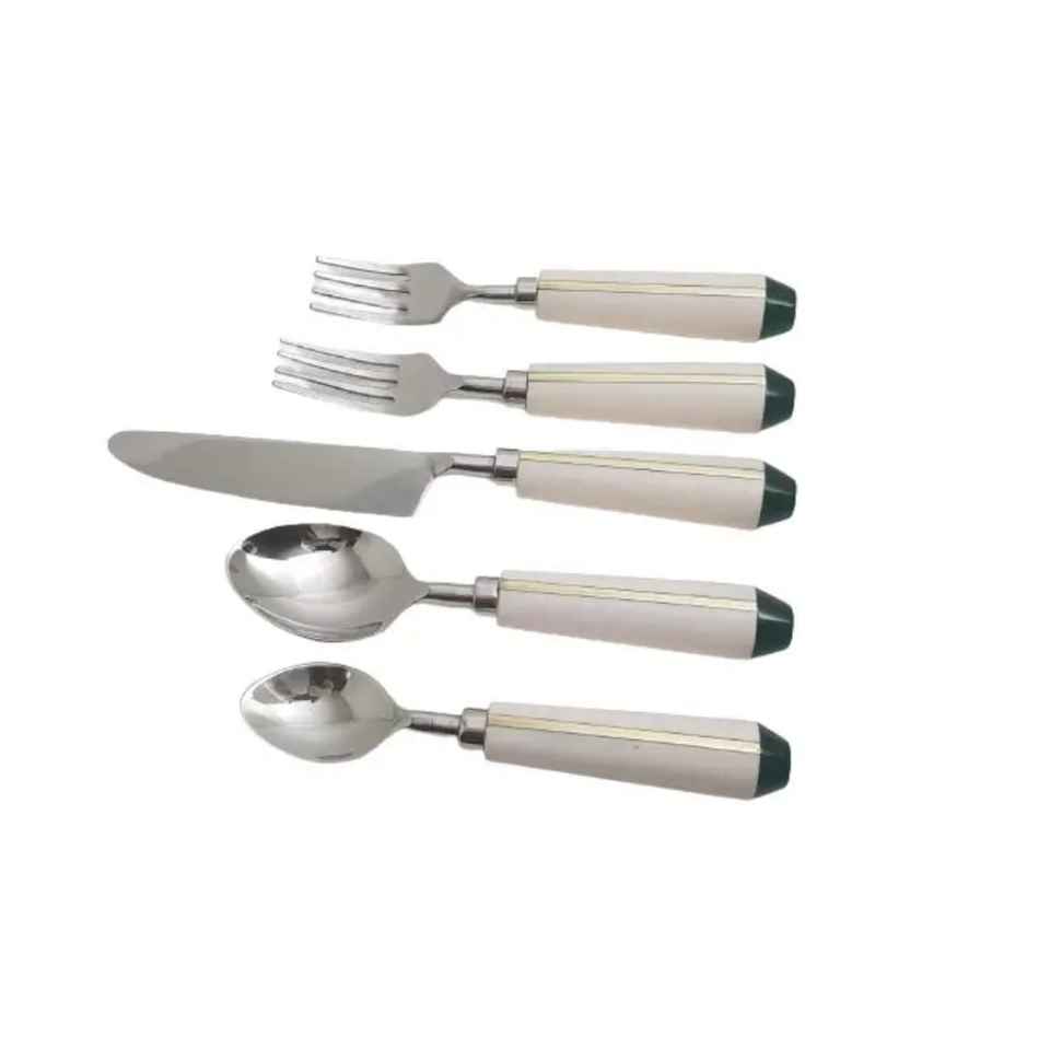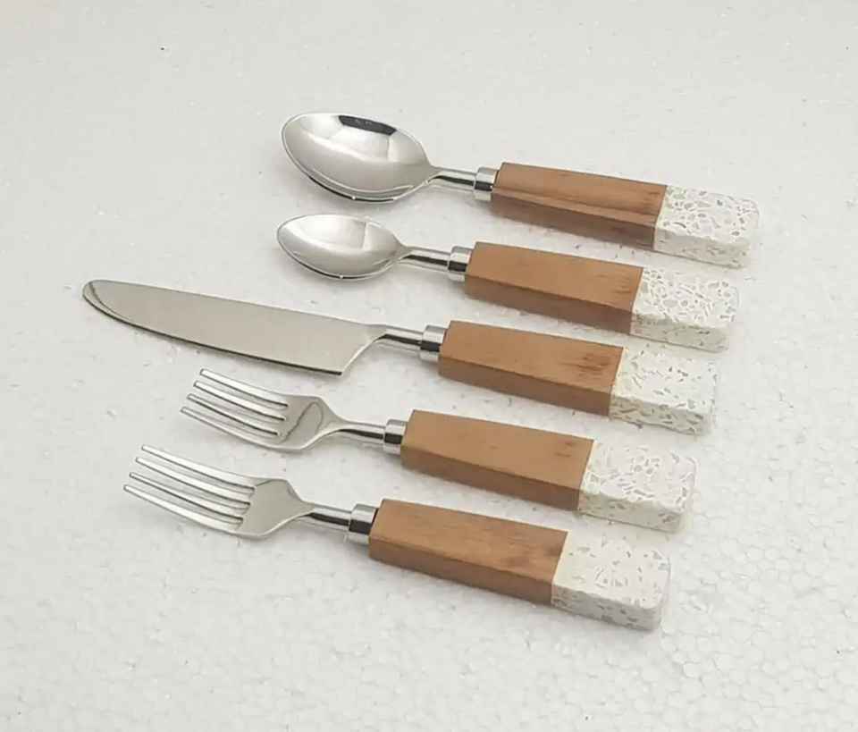 Ensemble de couverts en acier inoxydable de qualité supérieure, cuillère et couteau, finition miroir durable, manche en bois, style moderne, personnalisé