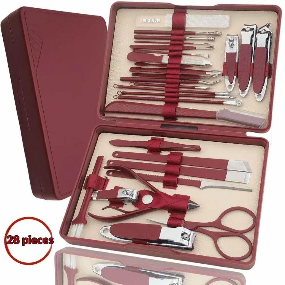 Ensemble de ciseaux à ongles professionnels en acier inoxydable, marron, 28 pièces, lames courbées, usage domestique, coupe-ongles de beauté, cadeau, lime à pieds