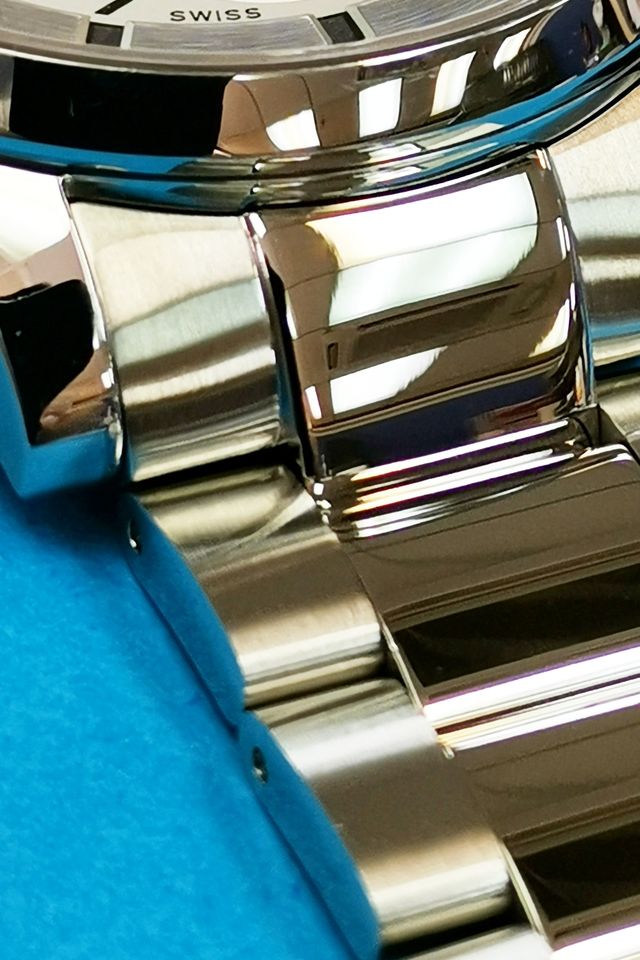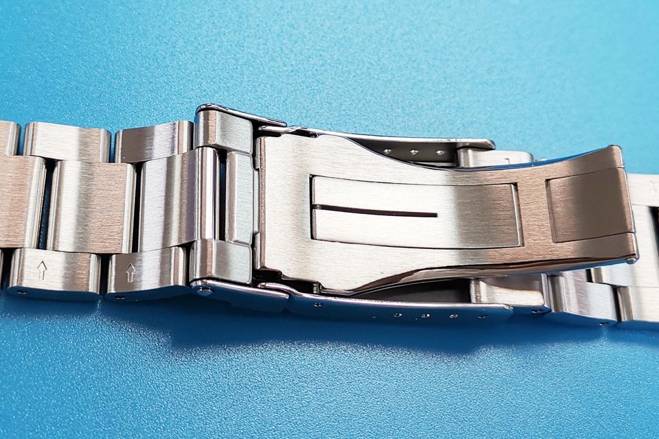 Bracelet de montre à barre de profil en acier inoxydable, avec maillons de frisation CNC et boucle de sécurité