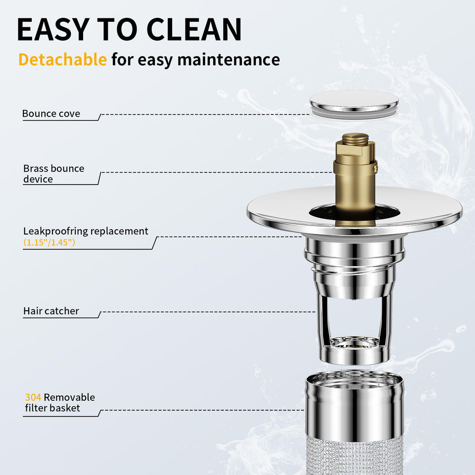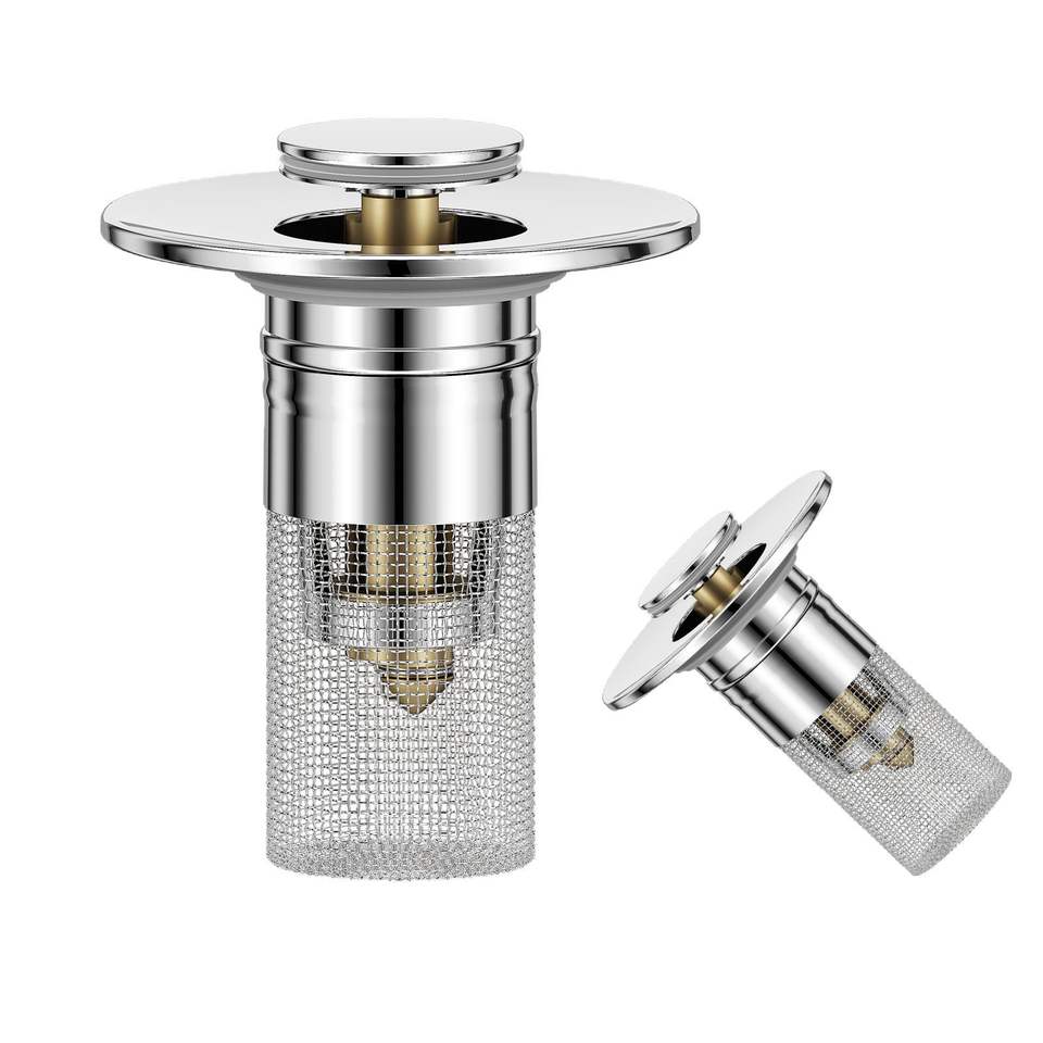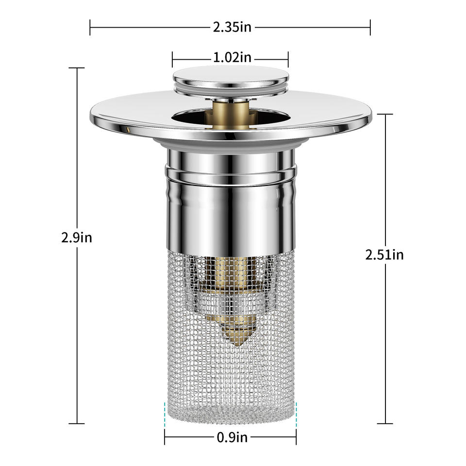 Filtre de vidange à bouton-poussoir en acier inoxydable, diamètre 2,35 pouces, anti-cheveux, pour lavabos et éviers