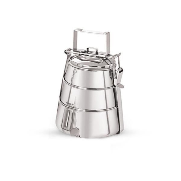 Boîte à lunch pyramidale en acier inoxydable avec un design innovant à plusieurs niveaux, compartiments étanches et construction durable, idéale pour le transport