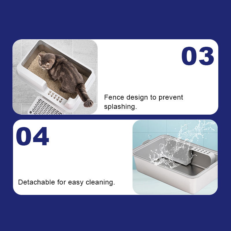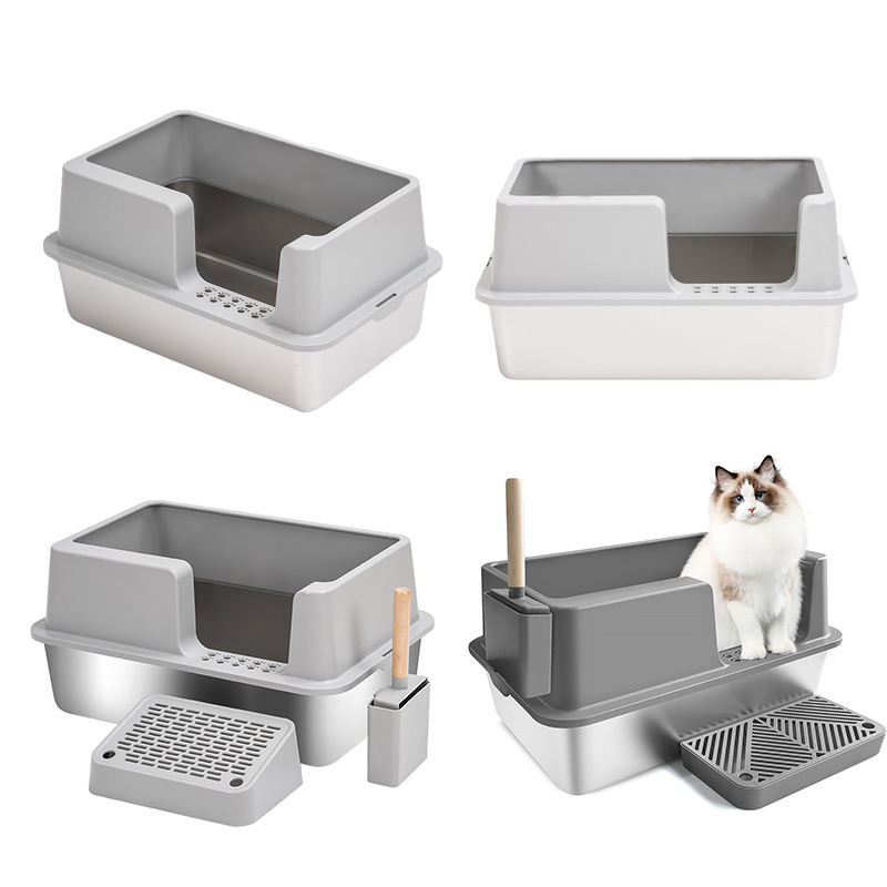 Boîtier de nettoyage rapide en acier inoxydable Boîte à bacs à sable pour litière pour chat avec couvercle haut