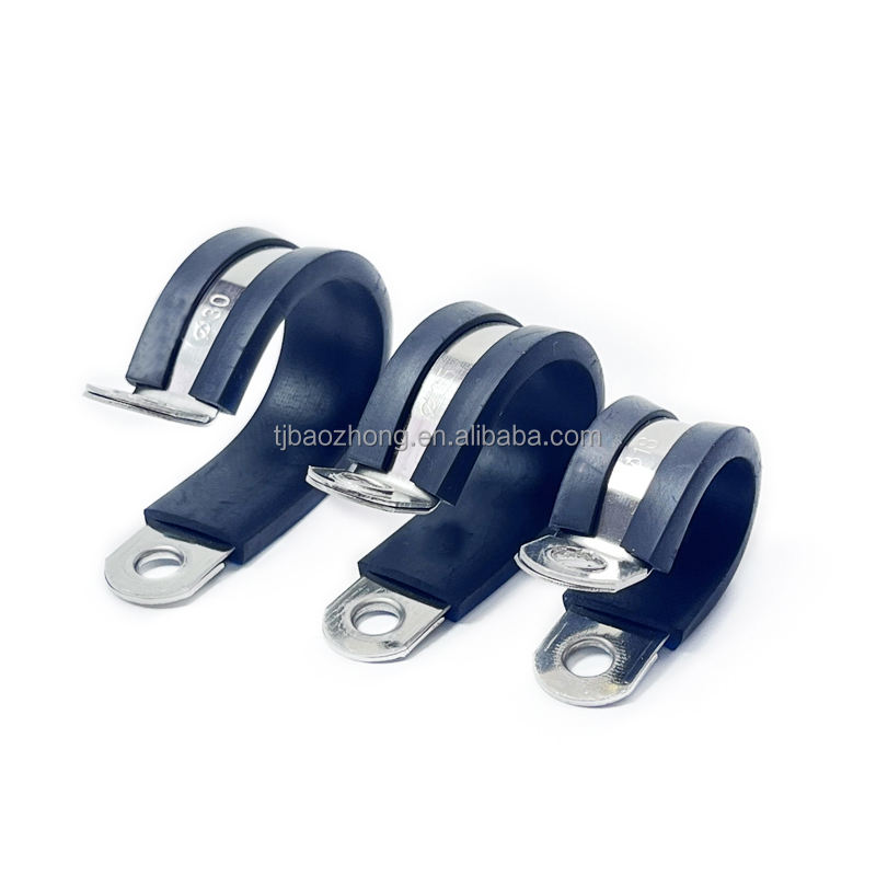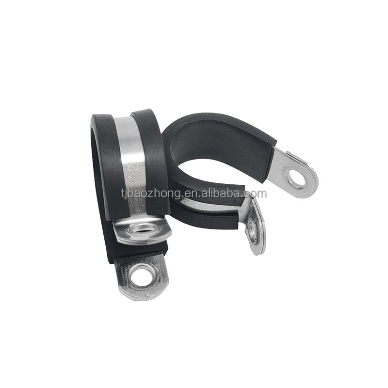Collier de serrage en acier inoxydable, type R, doublé de caoutchouc, pince à collier fixe, support, montage de câble, collier de serrage