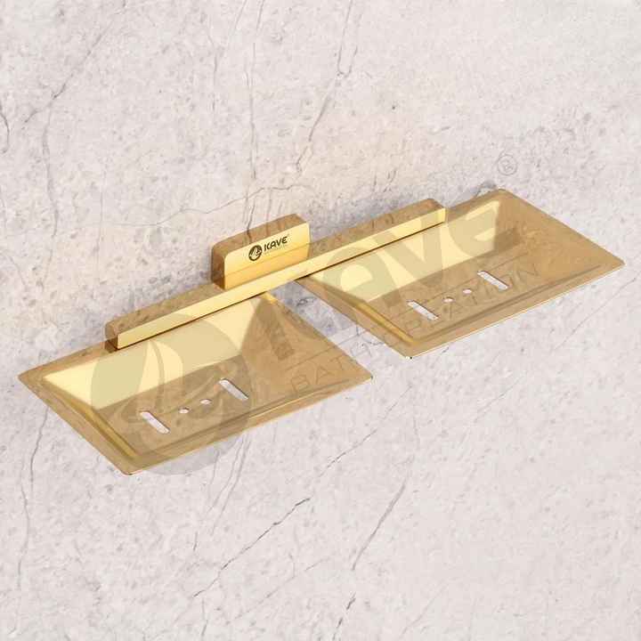 Acier inoxydable Rectangle Or Double Porte-Savon Salle De Bains Comptoir Organisateur Moderne Durable Résistant À La Rouille Facile À Nettoyer Élégant
