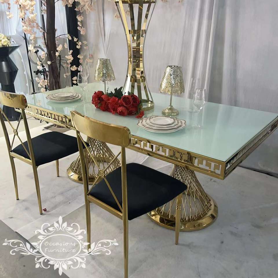 Dessus de rectangle d'acier inoxydable avec les tables d'hôtel de salle à manger en verre trempé blanches