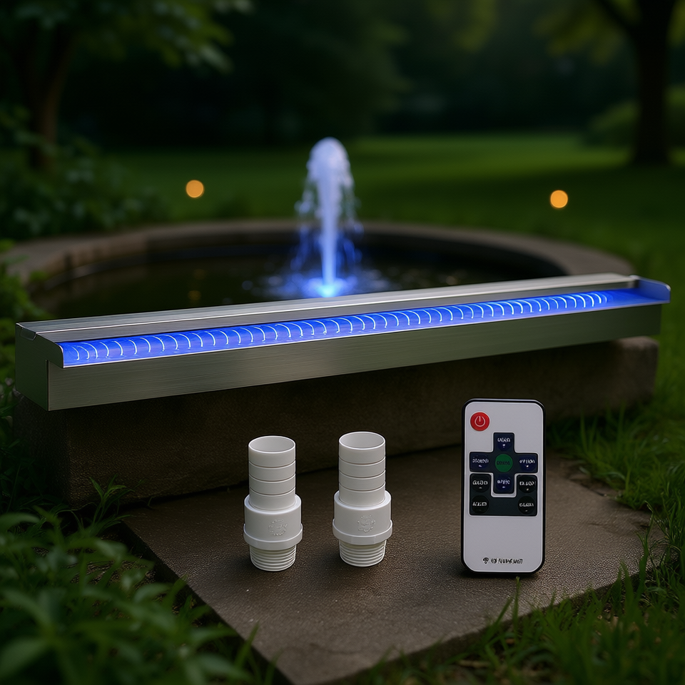 Fontaine de jardin rectangulaire en acier inoxydable avec bande lumineuse LED, cascade à intensité variable de 59 pouces, modèle D0100HA7JE7