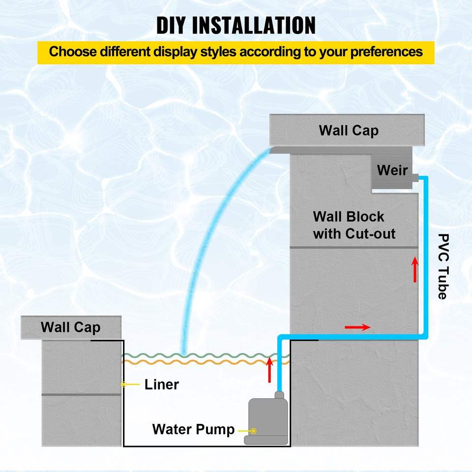 Fontaine de piscine extérieure rectangulaire en acier inoxydable avec bande lumineuse LED, cascade, modèle D0100HA701G, 23,6 po x 4,5 po x 3,1 po (L x