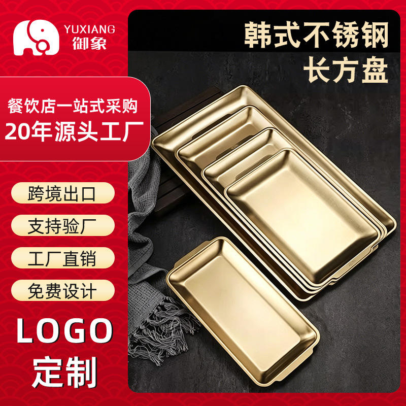 Plateau rectangulaire en acier inoxydable 304 pour barbecue, fondue, snacks, plateau de service, couleur unie