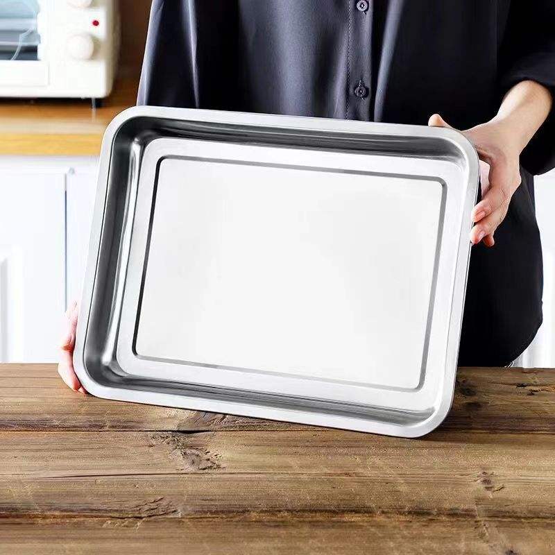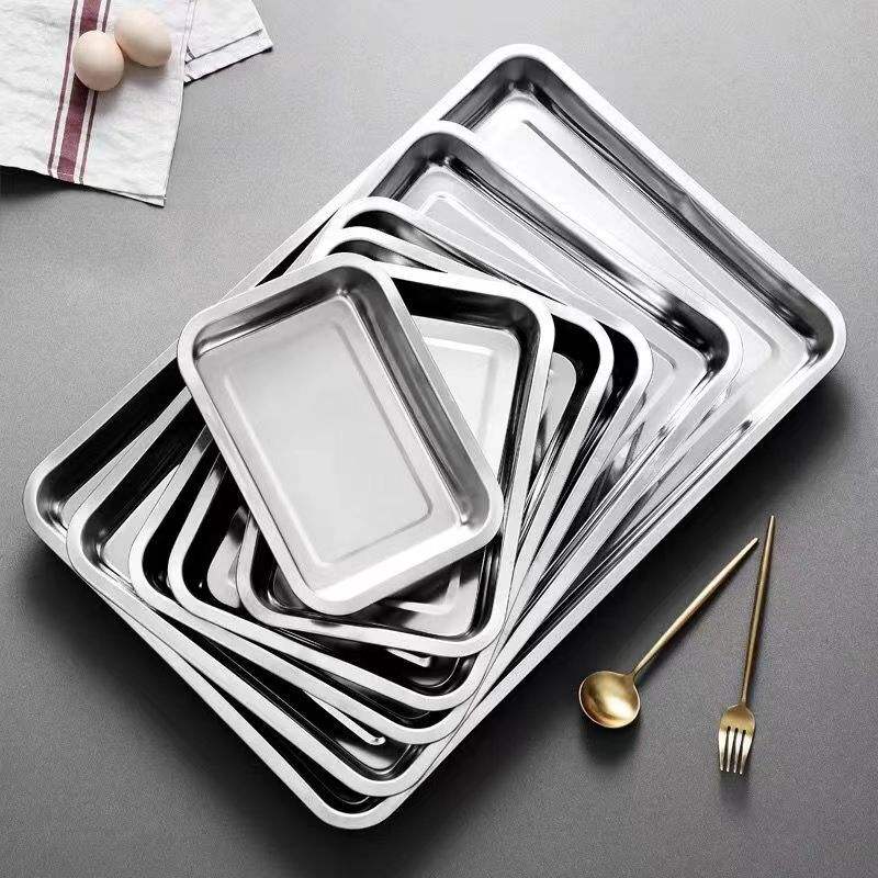 Plateau rectangulaire en acier inoxydable de 2 cm de hauteur, 4,8 cm de hauteur pour le service de nourriture, de café et de thé dans les hôtels