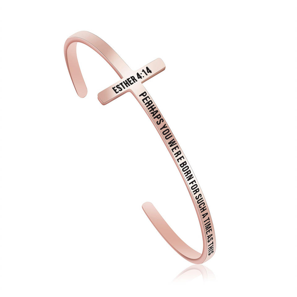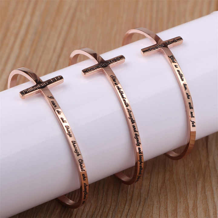 Nom du produit:Bracelet jonc croix avec verset biblique